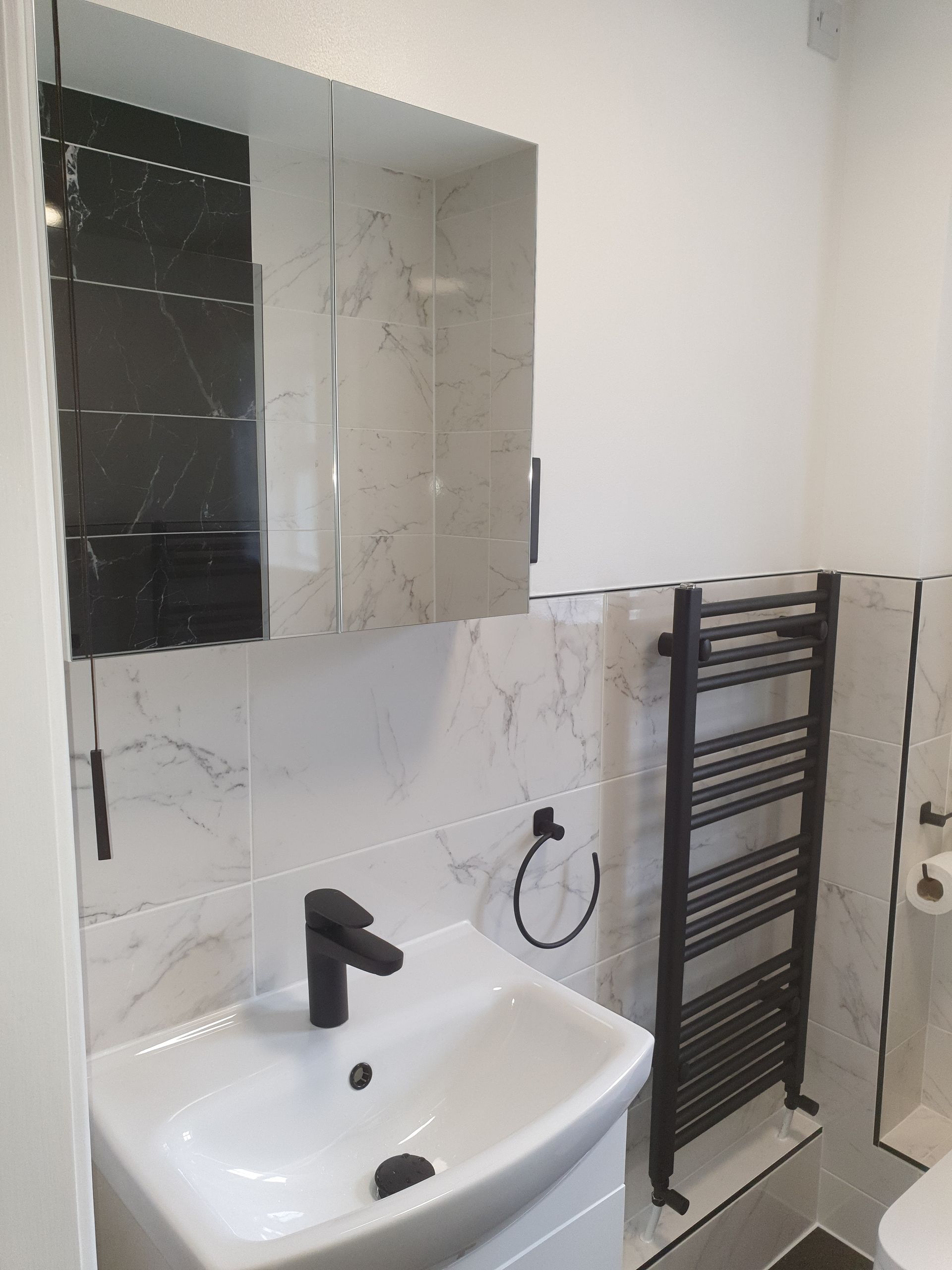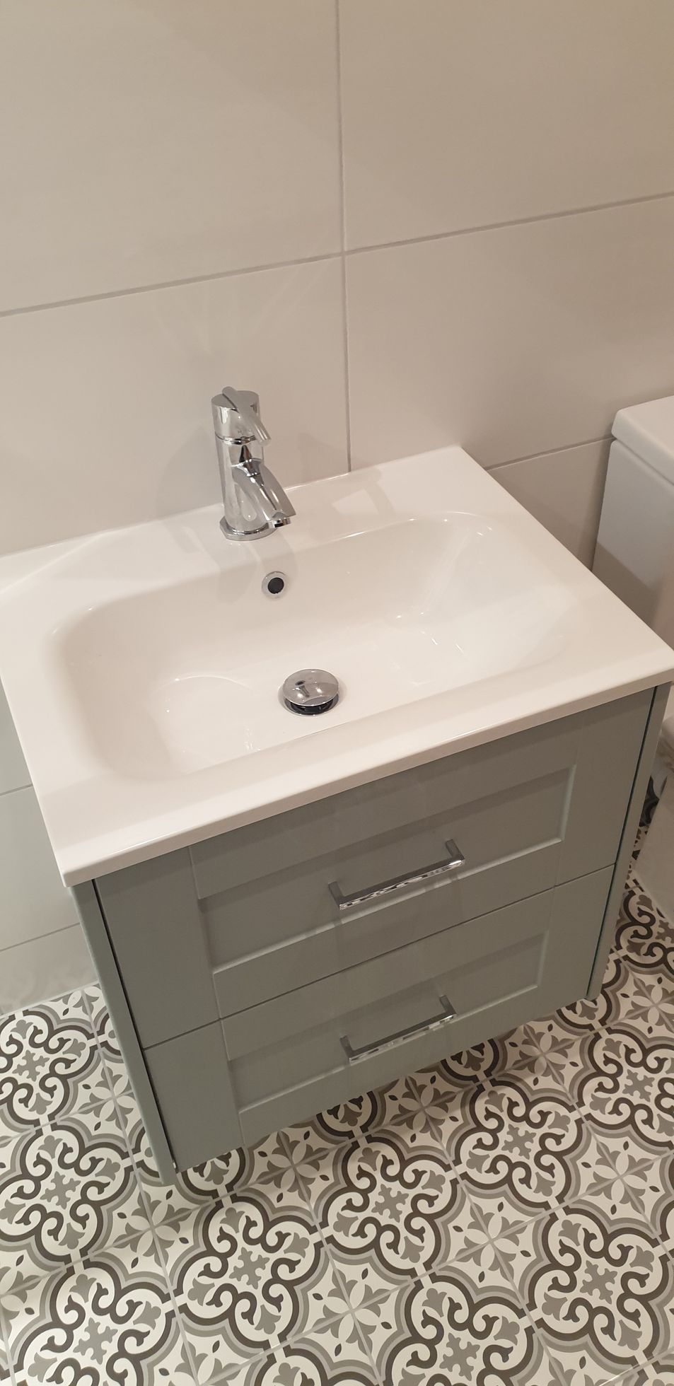 Recent job to remove raised broken shower tray and pedestal sink in place of low profile shower tray and vanity sink unit. New electric shower fitted too! Another happy customer #bathroomofinstagram #showerroom #sinks #plumbing #tilersofinstagram #townsleymultiservicesButton