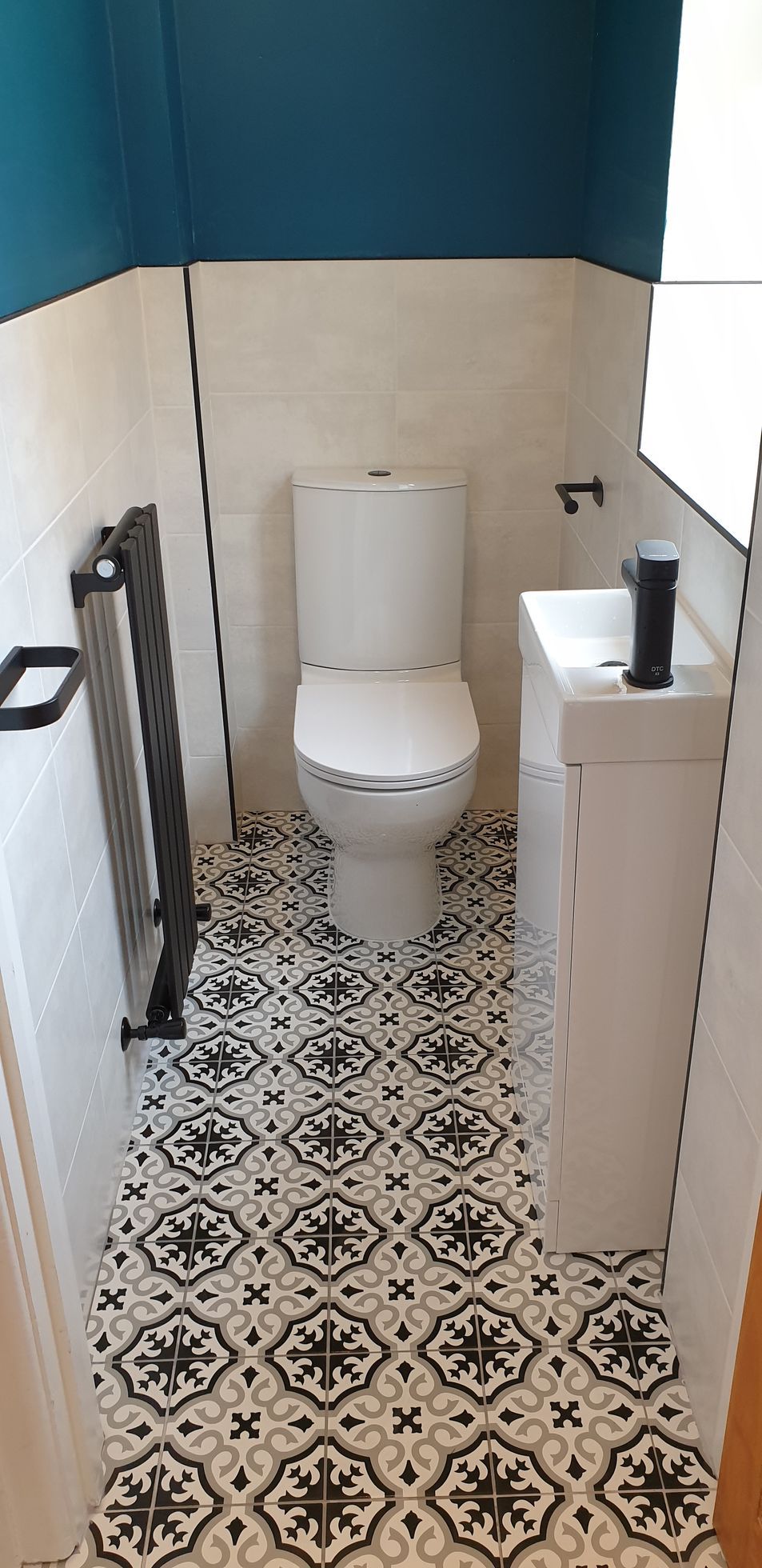 Recent Downstairs WC refurb and hallway tiling job #hallwaytiles #downstairstoilet #downstairslooButton